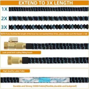 Upgrade your gardening with our Expandable Garden Hose that stretches up to 3x its original length. Built with a strong latex core and 3300D fabric, it’s lightweight, leak-proof, and easy to store. Comes with a 10-function spray nozzle, storage bag, heavy-duty hanger, and extra sealing rings. Perfect for watering plants, washing cars, and outdoor cleaning.